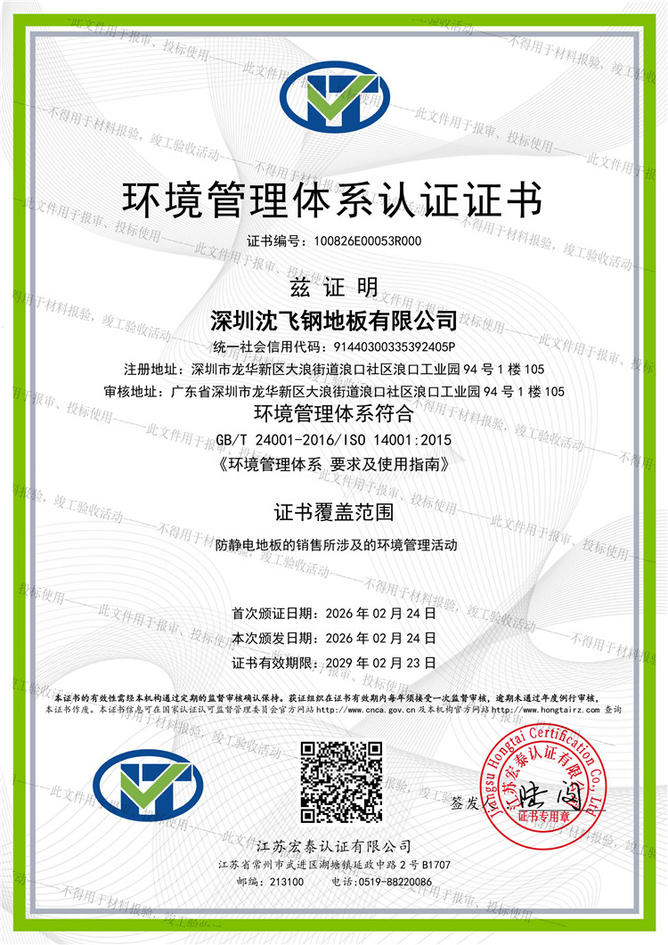 2. 環(huán)境管理體系:符合 GB/T 24001-2016 / ISO 14001:2015 標(biāo)準(zhǔn)