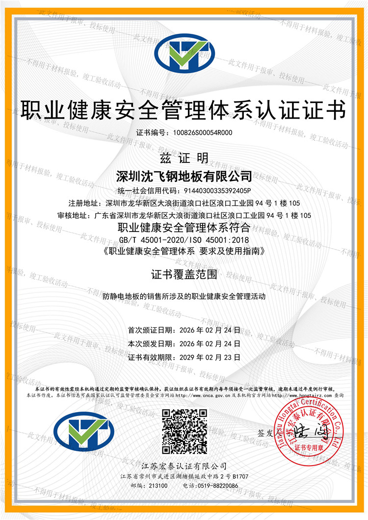 3. 職業(yè)健康安全管理體系:符合 GB/T 45001-2020 / ISO 45001:2018 標(biāo)準(zhǔn)